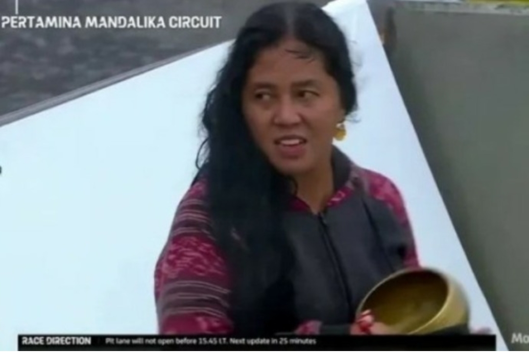 Dia diizinkan muncul di tengah-tengah sirkuit Mandalika- Lombok, dan melakukan ritualnya ketika hujan lebat disertai petir.
