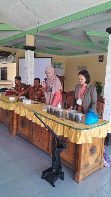 Dari Kiri ke Kanan bagian depan (Aziz (Sekretaris Desa Banjarwaru), Mugi Prihantono (Kepala Desa Banjarwaru), Nurlinda Ayu Triwuri, S.T., M.Eng, Rosita Dwityaningsih, S.Si.,M.Eng).-Politeknik Negeri Cilacap (PNC)-