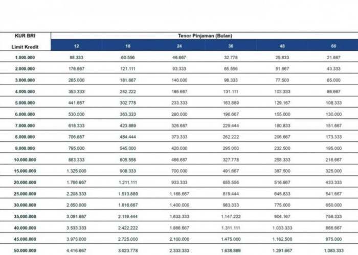 BACA JUGA:KUR BRI 2025: Berapa Cicilan untuk Pinjaman Rp50 Juta?
