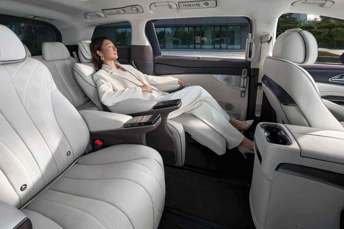 Memasuki bagian dalam, kabin mobil ini dibalut material kulit premium yang mewah dan nyaman. Setiap kursi dilengkapi fitur pijat, sandaran kaki elektrik, serta meja lipat multifungsi untuk menunjang kebutuhan penumpang.